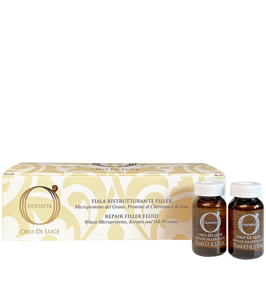 Регенерация с эффектом филлера. Богатый протеинами флюид для уплотнения и укрепления тусклых, поврежденных и тонких волос.