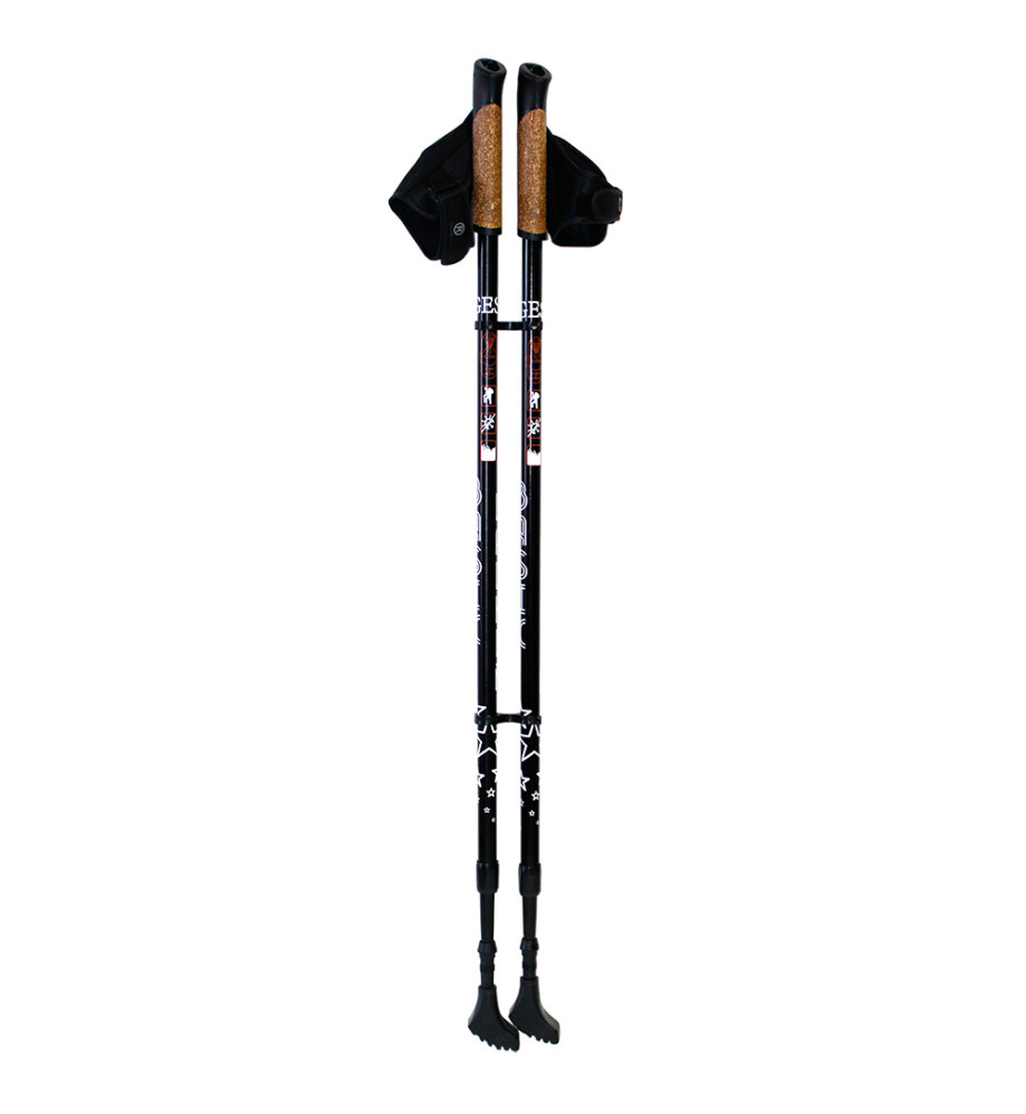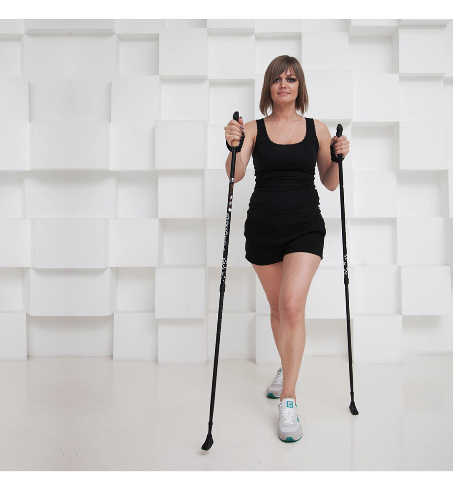 Можно использовать на любой местности: в парке, в спорт зале, в лесу и в городе, в любое время года. Изготовлены из легкого прочного алюминиевого сплава, ручка из композитной смеси пробки с полиуретаном. Темляк в виде полуперчатки, отключаемый амортизатор. Съемная насадка - башмачок. Диапазон регулировки длины 80-135 см, длина в сложенном состоянии - 80 см.