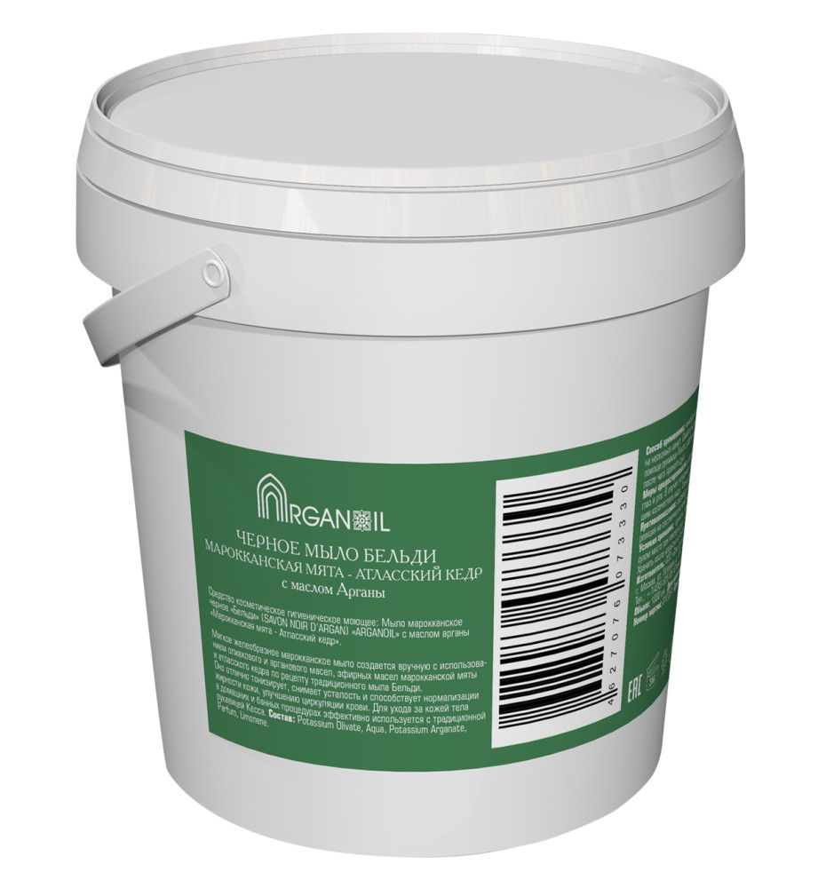 Средство косметическое гигиеническое моющее марки "ARGANOIL" серии "Fruits du Maroc": Марокканское черное мыло Бельди с маслом арганы "Марокканская мята – Атласский кедр"
