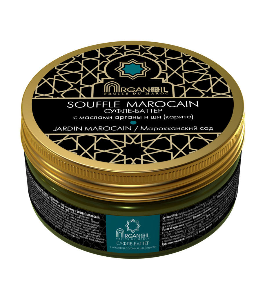 Суфле-баттер (взбитое масло карите с маслом арганы) марки ARGANOIL FRUITS DU MAROC Вербена активно увлажняет и восстанавливает кожу благодаря комплексу ухаживающих масел карите (ши) и арганы.