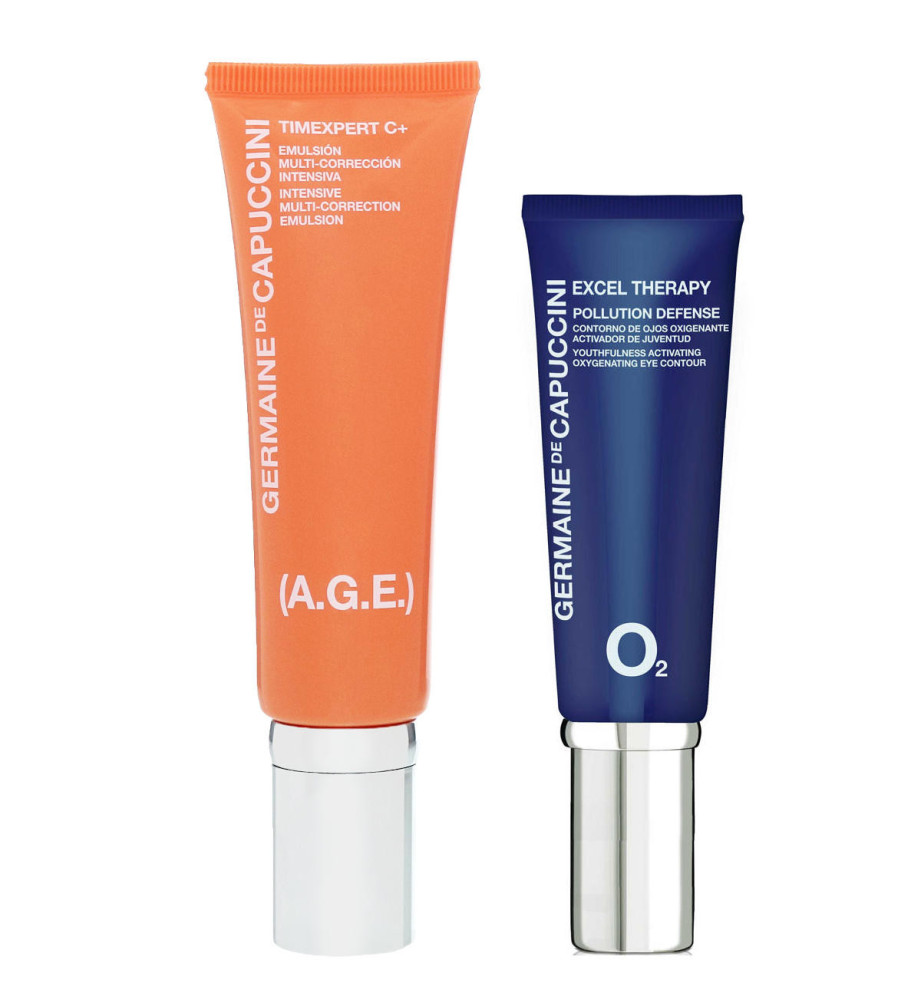 Набор для восстановления от Germaine de Capuccini состоит из Эмульсия восстанавливающая Timexpert C+ (A.G.E.) Intensive Multi-Correction Emulsion, 50 мл (81072) + Крем для глаз кислородонасыщающий Excel Therapy O2, 15 мл (81634).
